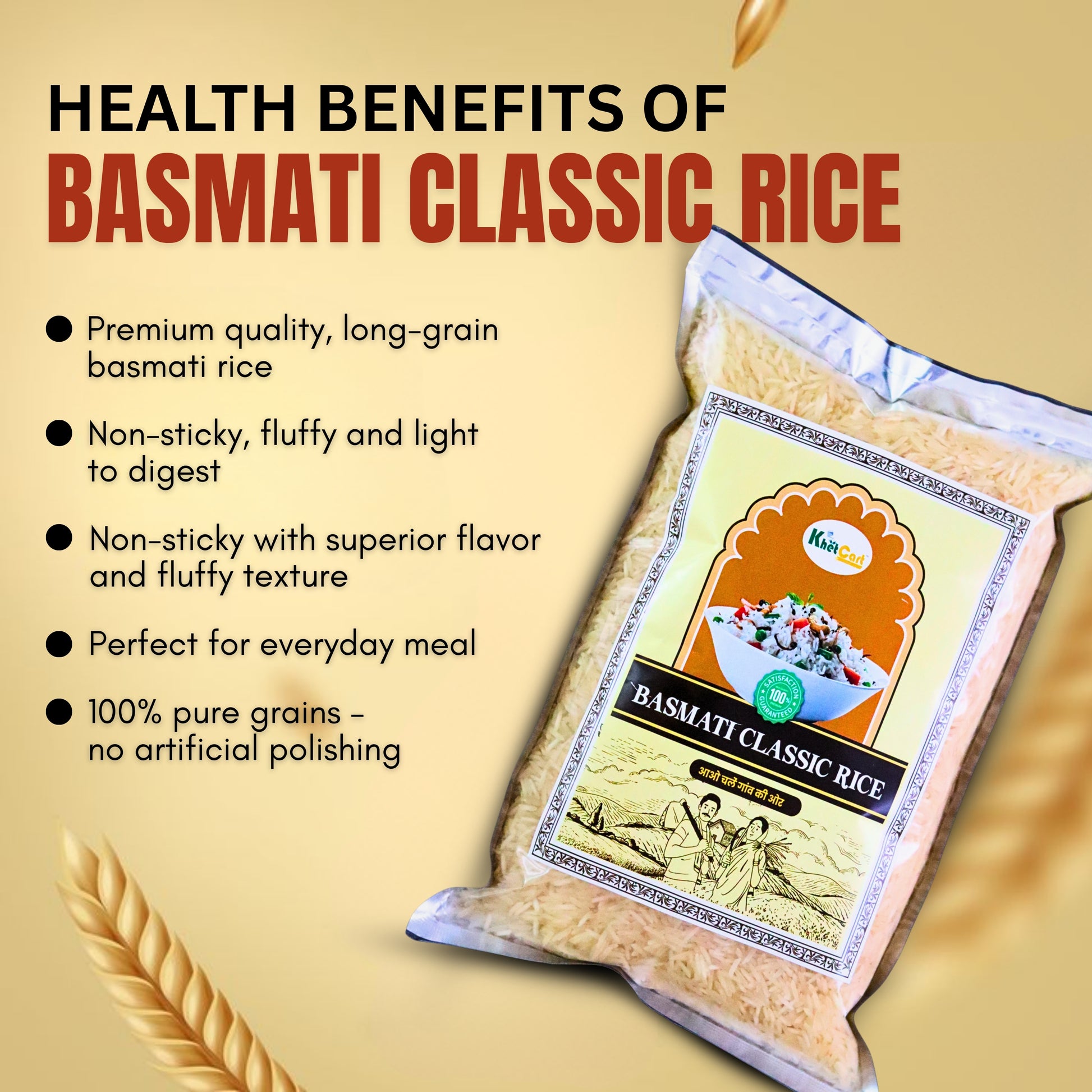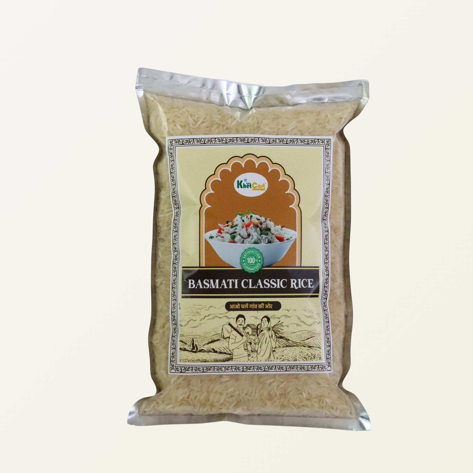 Khetcart Basmati Classic Rice is sourced from high-quality, long grains rich known for it rich aroma, flavorful taste, non-sticky and soft texture. Perfect for everyday meals like Rajma chawal, Kadhi chawal and more. Fluffy, light and easy to digest..